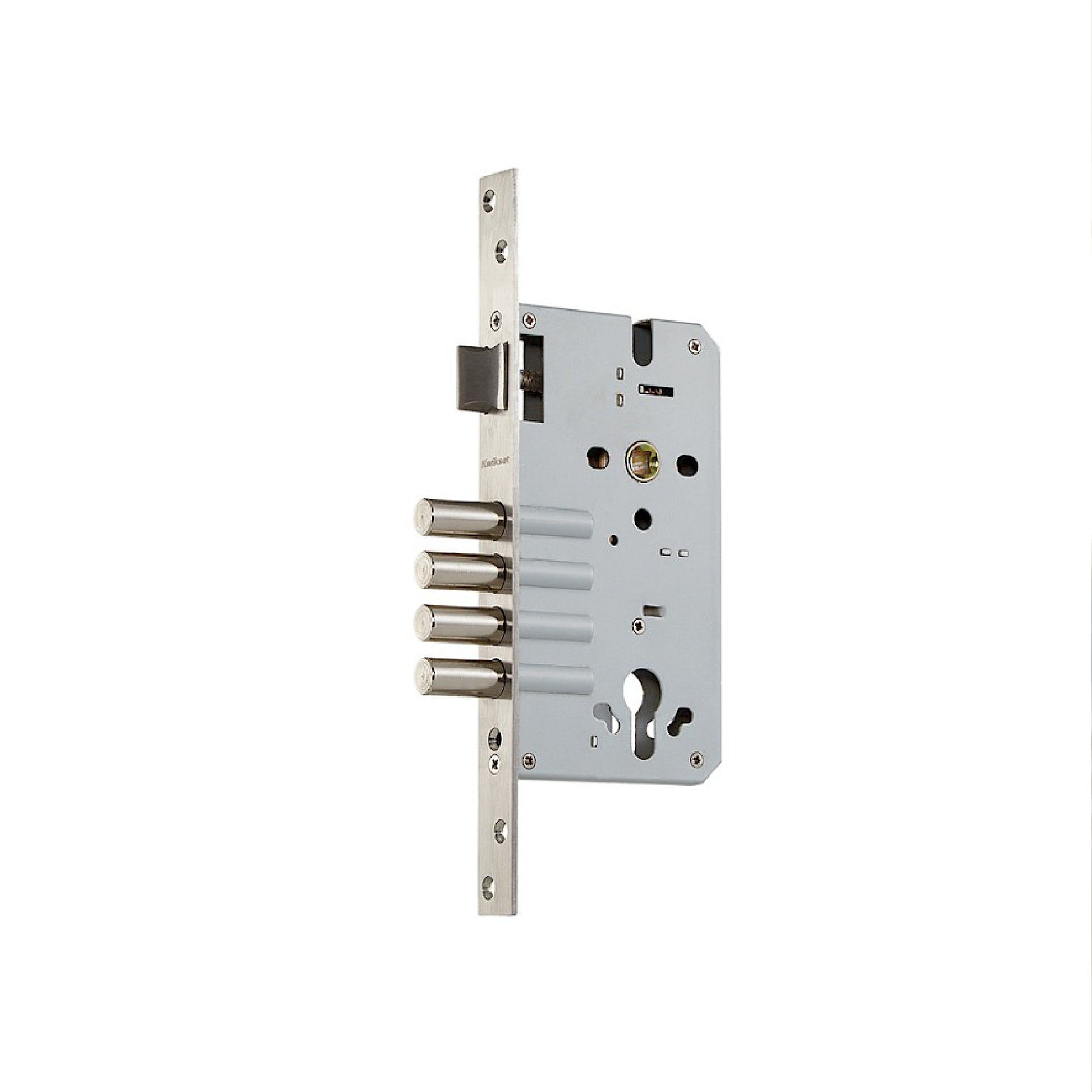 Cerradura de Embutir Palermo 4 Bulones + Cilindro Doble + Manijas en Níquel Satinado